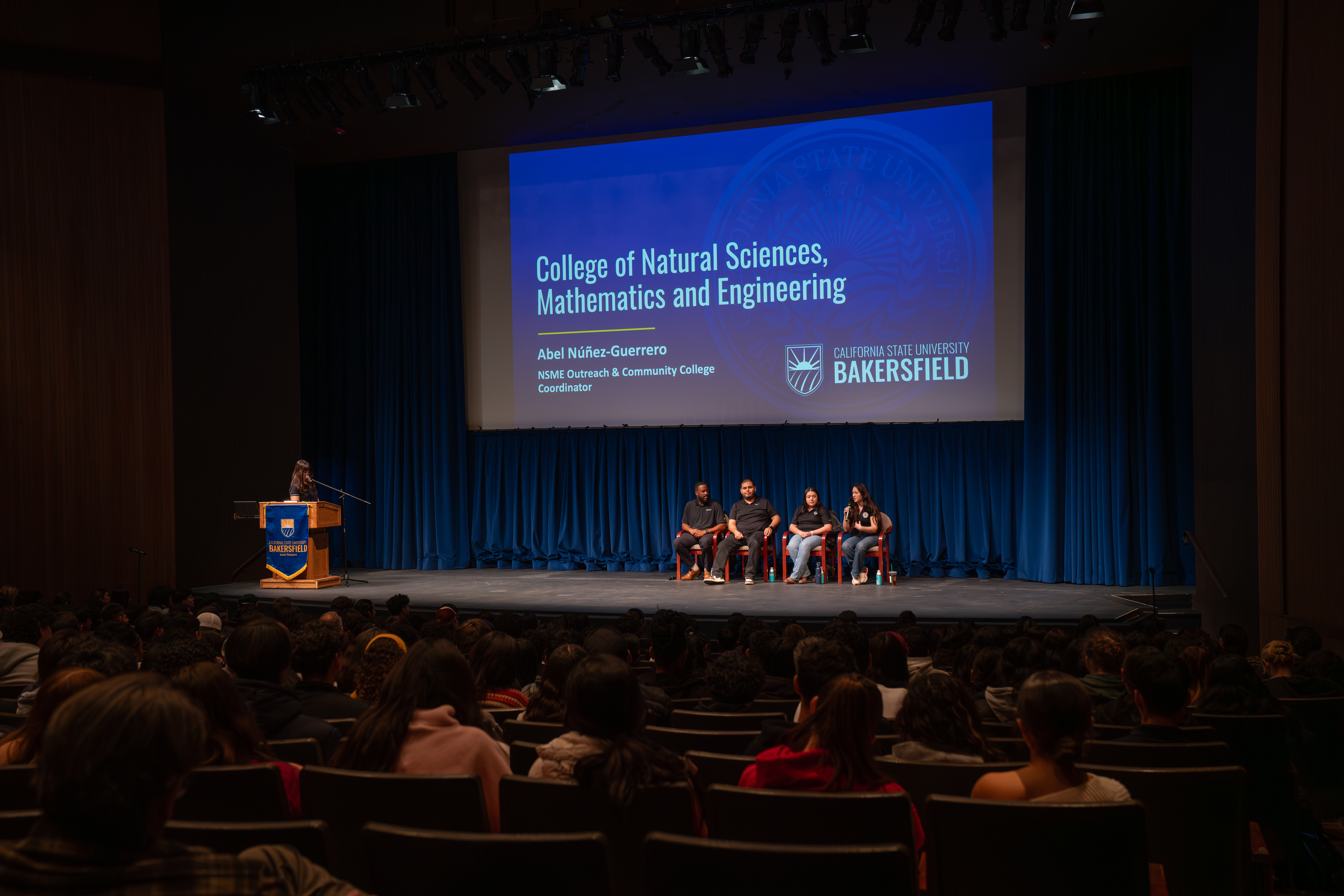 Following her presentation, Peters stuck around for an alumni panel, where she was joined by fellow CSUB engineering grads: Kalyn Dunham (Class of 2020), a systems engineer at Serban Sound & Communications; Alfredo Arevalo (Class of 2020), an instrumentation operations engineer at Edwards Air Force Base; and Lailah Garrido (Class of 2025), engineer at Rain for Rent. Like the younger students in the audience, they all attended Kern High School District schools.